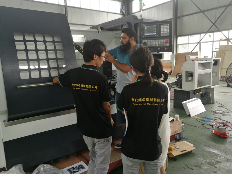 山東數(shù)控車床生產(chǎn)廠家 泰安鈺卓機(jī)械有限公司 于8月3日  迎來以前購買輪轂車床的英國客戶 前來培訓(xùn)輪轂車床  經(jīng)過我們技術(shù)人員的耐心的指導(dǎo)和培訓(xùn) 客戶很快能熟練操作 并對我們公司的服務(wù)非常滿意